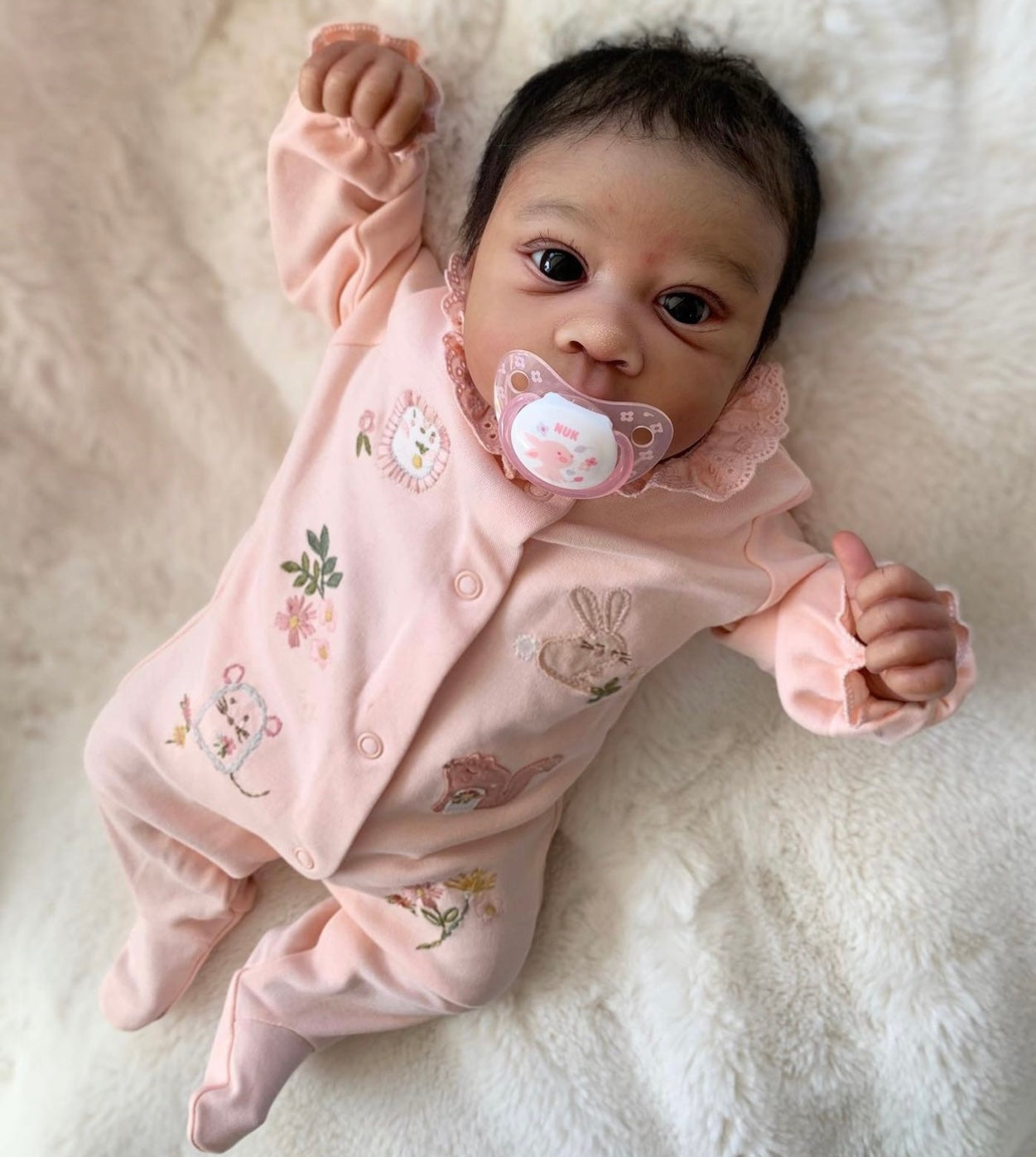 From their delicately molded fingers and toes to their soft, squeezable cheeks and realistic skin folds, every detail is made to look and feel as close to a real baby as possible. Their mouths are open and flexible, allowing them to take a real pacifier, baby bottles, and even a thumb – perfect for feeding, posing, or role-playing.